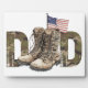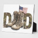 Honren la dedicación inquebrantable y el sacrificio de los padres militares con este sincero tributo. Con un par de botas militares escarpadas contra un audaz "DAD" con el tema del camuflaje, este diseño encarna fuerza, servicio y amor. La bandera estadounidense ondea orgullosamente arriba, simbolizando el patriotismo y el profundo respeto por los que sirven. En esencia, la conmovedora cita, "Papá, siempre has sido mi héroe", habla del vínculo entre padre e hijo.