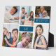 Moderno Collage de fotos Plaque. El diseño presenta 6 fotos y Dad We Love You In (Papá te amamos) con letras de moda sobre un fondo marino. Un regalo perfecto para el padre para el día del padre, Navidades o cumpleaños, etc.
