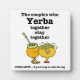 Cute YERBA MATÉ Parejas placa para parejas que aman beber té de hierbas de Yerba Mate - especialmente por sus beneficios para la salud. Yerba Maté es una popular alternativa cultural al café en Argentina y Paraguay y está ganando popularidad en todo el mundo. Se bebe de una calabaza, usando una 'paja' de bombilla y se hace a partir de las hojas de la planta Ilex paraguariensis. Este diseño muestra un buen personalizado antropomórfico besando a una pareja. La frase dice las PAREJAS QUE YERBA JUNTOS SE QUEDAN. Esta placa de parejas yerba sería un gran regalo para las parejas - especialmente para los El día de San Valentín o para mostrar su compromiso entre ellos y con Yerba Maté.