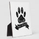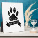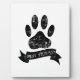 Impresión de la pata de perro con cinta negra. El mejor amigo del hombre. Imagen en blanco y negro.