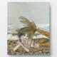 Una sirena se extiende sobre una playa rocosa pensando en alguien especial.