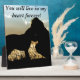 Una silueta de un perro y una mujer es creada por la puesta del sol detrás de ellos. El perro y el dueño del perro están muy juntos mostrando su emoción el uno por el otro. Use este producto como un regalo de simpatía para perros o para honrar al perro que ama. Un regalo para un dueño de mascotas, un regalo para un amante de las mascotas, regalo de recuerdo de mascota o regalo por pérdida de mascota. Agregue el nombre de la mascota y cree un regalo personalizado para mascotas.