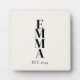Diseño vertical con letras en negrita en serif en negro apiladas sobre un fondo de marfil. El nombre corre verticalmente por el centro con una pequeña frase "est. 2024" debajo, creando un acento de escritorio limpio y moderno centrado en el texto.