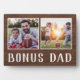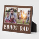 Encantador cartel de madera para el Día del Padre, cumpleaños o nuevos pasos presenta dos fotos lado a lado en un fondo rústico con "Bono Papá" debajo.