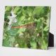 Esta impresionante placa muestra una fotografía de una hermosa libélula común de darter (Sympetrum striolatum). Esta especie es principalmente marrón con manchas rojas en su cuerpo y hermosos ojos marrones. La fotografía fue tomada desde arriba usando fotografía macro para obtener un resultado asombrosamente detallado. Se ven claramente los dos pares de alas y todos sus intrincados patrones.