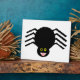 Esta impresionante placa presenta una espeluznante araña negra con ocho piernas peludas, ojos amarillos con grandes pupilas negras y su boca abierta mostrando sus colmillos.