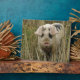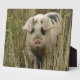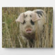 Esta impresionante placa muestra una hermosa fotografía de un lindo cochinillo rosado que emerge de una hierba alta.