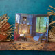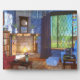 Un acogedor rincón de lectura en un soleado día de primavera. La cálida luz del sol entra a través de las ventanas de entramado, dejando sombras en la pared e iluminando el florecimiento del cerezo "globo de nieve" en la estantería. En la ventana hay una colorida sombrilla que brilla por la luz. Alrededor de la chimenea hay sillones mullidos con jarrones de flores y libros y una taza humeante de té, pero las ventanas están abiertas para que entre la brisa primaveral. En el exterior, un sauce verde primavera y una cubierta de haya y un arce japonés rojo están rodeados de tulipanes y flores de maíz, mientras que un gato jengibre asoma por el pasto largo.