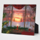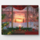 "Para dar a conocer la salvación a su pueblo por medio de la remisión de sus pecados, por medio de la misericordia tierna de nuestro Dios; por medio de la cual nos visitó el día de arriba a abajo, para iluminar a los que se sientan en tinieblas y en la sombra de la muerte, para guiar nuestros pies en el camino de la paz." Lucas 1:77-79 Sentado cerca del árbol de Navidad mirando por la ventana en un paisaje nevado viendo el amanecer en la mañana de los Navidades.