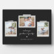 Los sentimientos alegres fotografian placa fotográfica. Características, 3 fotos enmarcadas con acentos de cinta washi estilo scrapbook, dos líneas de texto de plantilla para el mensaje y nombres con detalles de corazón en blanco sobre fondo de color negro pizarra.