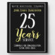 Plaque de tipo certificado en reconocimiento del Servicio Leal de un empleado. Placa de premio de servicio largo para un trabajador leal, y tal vez para un miembro del personal que se está jubilando. Incluye la duración del servicio y el nombre del destinatario. Fondo negro. Incluye un borde blanco.