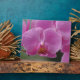 Esta placa brillante de alta calidad presenta hermosas orquídeas rosas adornadas con gotas de lluvia.