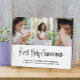 Placa de collage de fotos moderna y elegante. La primera comunión sagrada aparece en un sofisticado guión tipográfico con elegantes letras escritas a mano sobre un fondo blanco. Personalizar con un nombre, la fecha, el lugar del bautismo. ideal como regalo o conservador.