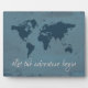 Dejar que la aventura comience el diseño de texto con la decoración de mapas del mundo sobre fondo gris, azul