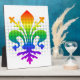 Un arco iris de flur de lis con un patrón de fondo de fleur de lis.