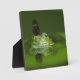 Una linda rana verde sentada sobre su almohadilla de lirio en un estanque, con su cara saliendo por encima de la superficie del agua. Una mariposa curiosa se sienta en su nariz. Estos lindos critiqueros parecen como si pudieran ser mejores amigos