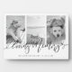 Atesore sus recuerdos especiales con nuestra placa conmemorativa de colage de fotos de mascotas moderna y minimalista. Nuestra placa conmemorativa de fotos de mascotas le permite mostrar 3 de sus recuerdos fotográficos favoritos de mascotas para atesorar en su hogar. "Recuerdo Amoroso" se muestra en una caligrafía moderna de pincel negro. Personalice con el nombre de su mascota, fotos y fecha pasada.