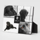 Adorable placa conmemorativa para mascotas con cuatro fotos de tu querida mascota, y en el centro un marco cuadrado con una huella de pata con un corazón adorable en el interior, su nombre y fechas.