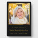 Placa conmemorativa familiar con una imagen de su ser querido rodeada de un marco dorado con su nombre en letra cursiva elegante, así como un titular personalizable (En memoria de) y fechas.