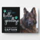Mantén a tu perro querido y mejor amigo en tu mente y corazón para siempre con esta dulce placa conmemorativa de la foto de tu mascota. Este diseño presenta una apariencia colorida con blanco como fondo con una cita que dice "ERAS MI HOLA FAVORITO Y MI ADIÓS MÁS DURO". Personaliza esta placa conmemorativa de tu perro con la foto, nombre y fechas de recuerdo de tu querido perrito.