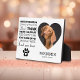 Una adorable placa conmemorativa de mascota con una foto de su mascota en un marco en forma de corazón, y una hermosa cita de condolencias que dice "Cuando mañana comience sin mí, no piensen que estamos muy separados. Cada vez que piensen en mí, estoy aquí dentro de su corazón", una huella de pata, su nombre y fechas.
