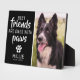 Adorable placa conmemorativa de mascota con una foto de tu mascota, y la cita de condolencias que dice "Los mejores amigos son los que tienen Patas", una huella de pata, su nombre y fechas.