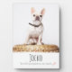 El regalo de consuelo perfecto para ti mismo, familiares o amigos para recordar a los seres queridos y perdidos. Personaliza con el nombre de la mascota y tu foto favorita en una placa conmemorativa de calidad profesional. La famosa cita "Dejaste huellas de patas en nuestros corazones", un corazón rosa y gráficos de huellas de patas hacen que este sea un regalo original y único. Diseñado para brindar consuelo y también como recordatorio de la felicidad que nos brindan nuestros bebés de pelaje. Toca "Personalizar esta plantilla" para cambiar la foto y/o el texto. Ideal para recortar tus fotos como desees antes de subirlas. Si necesitas ayuda o deseas un diseño personalizado, por favor contáctame a través del botón de chat de Zazzle. Foto de Jocko cortesía de @Dellalafrench en Instagram © Marisu Valencia