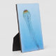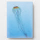 Una pintura acuarela de una medusa, con una parte superior colorida, en el océano grande, abierto y azul. Derechos reservados ©2017 Kimberly J Tilley.