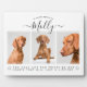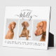 Ayude a un amigo o ser querido a recordar a su perro o honrar la vida de su mejor amigo con esta placa personalizada para la pérdida de una mascota. Este elegante recuerdo de simpatía moderno presenta un collage de 3 fotos, el mensaje de recuerdo "en memoria amorosa de", "has dejado huellas de patas en nuestros corazones que durarán toda la vida" y el nombre de la mascota en fuente negra de letra cursiva linda. Personalízalo con tus fotos favoritas. Modifica el texto si es necesario.