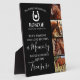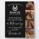 Elegante placa de tributo de caballo con un simple fondo negro, un collage de 4 fotos del caballo que recuerda, una cita de condolencias que dice "cuando alguien que amas se convierte en un recuerdo, esos recuerdos se convierten en tesoros", una herradura con un corazón, el nombre de su caballo y su fecha de nacimiento y muerte. Esta moderna placa conmemorativa de animales es fácil de personalizar y es el recuerdo perfecto para usted, su familia o amigos para honrar a esos caballos especiales que ya no están con nosotros.