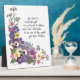 Hermosas palabras de aprecio y agradecimiento para cualquiera que signifique mucho para usted o que haya hecho algo maravilloso por usted. Especialmente apropiado para profesores, mentores, consejeros, enfermeras y aquellos que marcan la mayor diferencia en nuestras vidas. El arreglo floral resalta las pansias, pero también incluye a los tiranos, larkspur, delfinio, narciso, geranio perfumado y verbena, todo desde mi pequeño jardín. Simone Sheppard