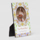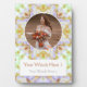 Placa de regalo de boda personalizada con estrella verde marrón púrpura. Personalice esto reemplazando la foto y el texto con sus propias palabras. Un estallido de estrella de patrón geométrico moderno de colores cálidos, verde suave, púrpura apagado y marrón otoñal rodea la foto de la novia, el novio o la feliz pareja. Un regalo personalizado de decoración de dopamina femenino y femenino para mostrar en su caprichosa sala de estar, dormitorio boho o ecléctica oficina en casa. Celebre el mejor día de su vida capturando sus queridos recuerdos felices de la familia con este recuerdo. También hace un gran regalo para los padres de los recién casados.