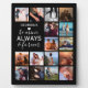 Placa de recuerdo personalizada con fondo negro que se puede cambiar a cualquier color, 16 fotos de tu elección, tu nombre, un símbolo de corazón blanco y el dulce texto que dice "sé mía, siempre y por siempre".