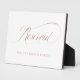 Esta elegante placa dice "reservada" en elegante caligrafía de color dorado rosa y poco claro y tiene un punto para añadir un nombre. La señal reservada perfecta para su boda elegante y sobrio.