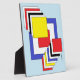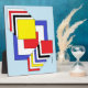 Esta obra de arte geométrica abstracta de Richard H. Fay presenta un conjunto de cuadrados en los colores primarios del rojo, el azul y el amarillo, así como el negro y el blanco.
