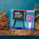 Placa Expositora Retro Televisor TV Set & Flower Arreglo Verde azul