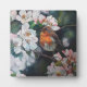Pintura de aceite en un estilo realista, representando un solo ave rojizo sentada sobre ramas de árboles de cerezo florecientes. Una alegría primaveral y la música de la naturaleza representada en los colores.