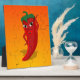 Una linda pimienta personalizado en un rompecabezas. Fondo rojo y amarillo. Diseño original.