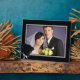 Foto en blanco y negro de un rosa negro con brillantes luces blancas.