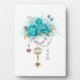 Llave de oro antiguo con rosas turquesa de moda decorados con hojas de oro blanco y cuentas rosas y azules. Color de moda. Rosas turquesas. Oro blanco. Tifanía azul.