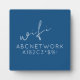 Facilite a los huéspedes la conexión a su WiFi con esta placa azul personalizada que muestra su nombre de red y contraseña. El diseño presenta un fondo azul moderno con texto en blanco y un área de personalizable para los detalles de la red. Esta versión del producto es de 5.25x5.25 pulgadas y viene con facilidad para su presentación en su hogar u oficina.