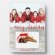 Moderno ilustracion de moda Navidades de vacaciones con un fondo rústico de madera y un guión de tipografía roja "Feliz Navidad" en el texto y copos de nieve y bokeh decorativos. Cambiar fácilmente las dos fotos de muestra con las propias.