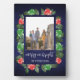 Rustic and whimsical red and green holiday mushrooms, woodland greenery and dark navy blue wood. Photography © Storytree Studios, Stanford, CA. Template image must be replaced with your own photo