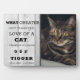 Mantén a tu amado mascota en tu mente y corazón para siempre con esta dulce placa de recuerdo de fotos mascota. Este diseño presenta un aspecto rústico con madera gris como fondo con una cita que dice "Qué regalo más grande que el amor a un gato". Personalice esta placa conmemorativa del gato con el nombre de su querido gatito y las fechas de recuerdo.