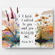 Placa de mesa con escritura de cita inspiradora que representa una hermosa acuarela natural, incluyendo tonos de tierra de flores silvestres en un estanque de agua de bosque con fondo de puesta de sol. Presenta una Biblia curadora motivadora Verse Salm 30 2, "Oh Señor, lloré a Usted y me curó".