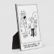 En un Salón de Belleza el marido es invitado a abrir los ojos para ver los resultados de la renovación de su esposa. El terapeuta de belleza quiere que sea una sorpresa y dice "abre los ojos" de la misma manera que lo hacen al revelar los resultados en un programa de televisión. Graciosa placa.