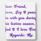 "Querido Amigo" El saludo de temporada festivo se difunde cordialmente y se anima con nuestro sincero saludo de temporada "Querido Amigo". Este hermoso diseño presenta un mensaje conmovedor para un querido amigo, transmitiendo deseos de amor, alegría y paz durante la temporada festiva. El texto está elegantemente escrito en una hermosa fuente de escritura, mostrada en un suave tono violeta contra un fondo blanco limpio, creando una estética serena e invitante. Este diseño único forma parte de la colección Achempong Zazzle, que se encuentra en varios productos, perfecto para compartir sentimientos sentidos con los que más aprecias. Características principales: Tipografía elegante: El elegante tipo de letra del guión añade un toque personal, realzando la calidez general del mensaje. Colores festivos: El suave morado sobre un fondo blanco y fresco crea un aspecto relajante y festivo. Ideal para: Tarjetas de felicitación: Perfecto para enviar a amigos y seres queridos durante la temporada de vacaciones. Decoración casera: Un agradable añadido a cualquier exposición festiva, aportando alegría y calidez a tu espacio. Ventajas de la compra en Achempong Zazzle: Opciones de Personalizable: Personalice su saludo con nombres o mensajes adicionales si lo desea. Materiales de calidad: Disfrute de la impresión de alta calidad en material de cartón duradero para una impresión duradera. Envío rápido: entrega fiable y rápida para garantizar que sus saludos llegan a tiempo. Imaginen compartir este encantador saludo festivo "Querido Amigo" con aquellos que más te quieren decir. Explore toda la gama de productos disponibles en nuestra colección Achempong Zazzle y encuentre la manera perfecta de expresar sus sentimientos. ¿Te gusta este diseño? ¡Compártelo con tus amigos y familiares!