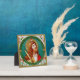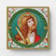 Este rosetón presenta a Santiago el Menor cargando un garrote grande y pesado, un garrote de batanero, el instrumento de su martirio y su símbolo principal. Sus manos dobladas en oración no es solo una pose piadosa convencional, sino otro atributo significativo: ¡Se dice que su vida de oración fue tan intensa que Santiago desarrolló callos gruesos en sus rodillas, lo que le valió el apodo de "[Viejo] Rodillas de Camello]"! (Eusebio, Hist. Ecl. 2:23-24 según Hegesipo). + Fiesta: 3 de mayo + Crédito de la imagen (JMAS 05): Imagen antigua de Santiago el Menor de una estampa devocional de finales del siglo XIX en cromolitografía con toques dorados publicada originalmente por Josef Müller, editor de arte, Múnich, Alemania, de la colección privada de efímera religiosa del diseñador