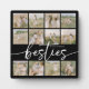 Are you lucky enough to have a best friend - Then show them just how much they mean to you with this stylish 'Best Friends' photo plaque. Featuring 12 square photographs of your choice, which you can easily download from your phone or computer, this plaque also includes the word 'bestie' in elegant calligraphy script on a trendy black background. The best part, you can customize the background color and add yours and your bestie's name for a truly personalized touch. Whether it's for a birthday, Christmas, or just because, this plaque makes a thoughtful and unforgettable gift for your best friend. They are priceless, after all!