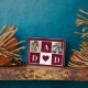Un diseño colorido con 2 fotos familiares llenas de hermosos recuerdos de papá, en un fondo de rojo. Carga tus fotos para personalizar.